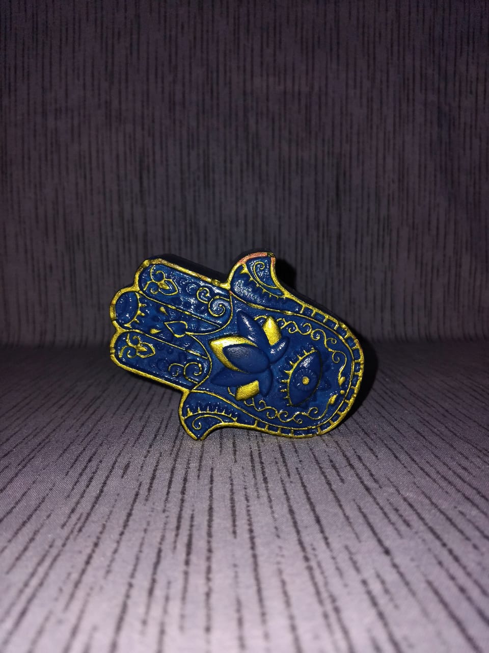 Handcrafted with intricate detail, this holder features the iconic Hamsa hand — a universal symbol of luck, protection, and positive energy. Designed with three incense stick slots, it allows you to blend fragrances or create a more intense aromatic experience. 🌼